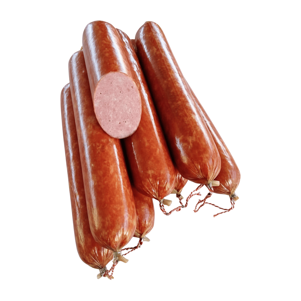 En Delislav, cada pieza se embute en tripa natural y se ahúma lentamente para lograr un aroma inconfundible y un sabor equilibrado, firme y elegante.